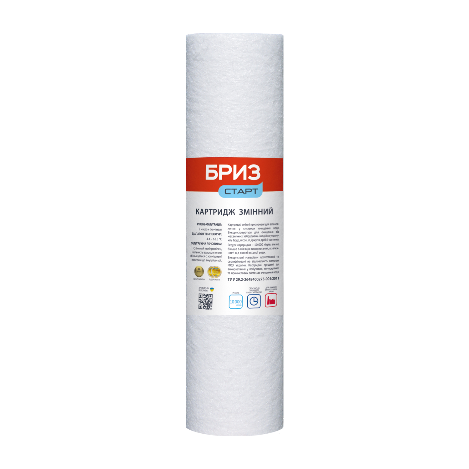 Картридж «Бриз Старт РР» предназначен для очистки водопроводной воды от механических загрязнений – грязи, ила, ржавчины, мелких взвешенных частиц размером более 5 мкм.