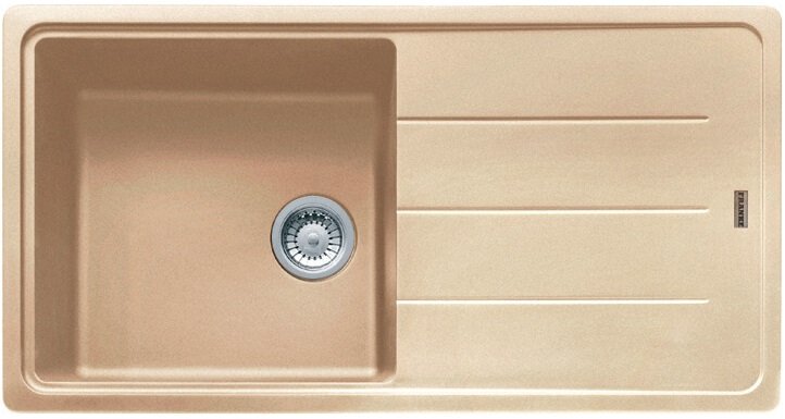Кухонная мойка Franke BASIS BFG 611-97 размером 970х500х200 мм. Есть одна основная чаша и крыло для посуды. Цвет – бежевый.