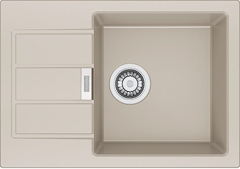 Кухонная мойка Sirius Tectonite SID 611-62 Slim прямоугольной формы с крылом для посуды имеет размер 620×435 мм. Размер чаши – 354×376 мм. Комплектуется вентилем-эксцентрик и сифоном, имеет два отверстия.