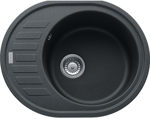 Кухонная мойка Franke Ronda ROG 611-62 овальной формы и размером 620х500 мм. Диаметр чаши – 400 мм, а глубина – 200 мм. Материал – фрагранит.