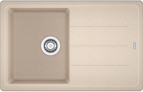 Franke BASIS BFG 611-78 – прямоугольная врезная мойка размером 780х500 мм. Есть одна чаша 340х420×200 мм и крыло для посуды. Материал поверхности – фрагранит.