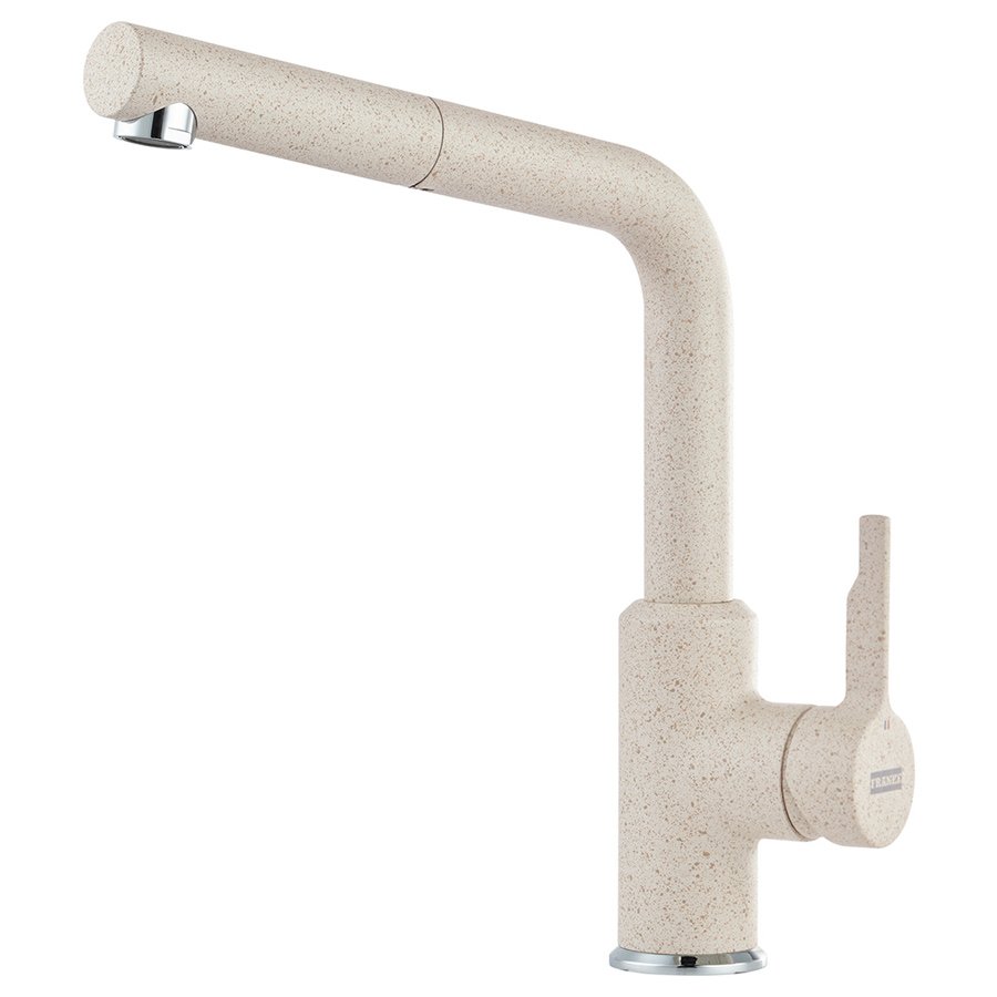 Врезной однорычажный кухонный смеситель Franke Urban с выдвижным шлангом (160 см), рычагом сбоку и многоуровневым аэратором.