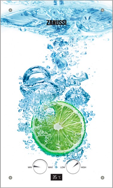 А также газовая колонка имеет свой индивидуальный фотофон, на котором изображен освежающий лайм.